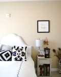 Alisha and Taylor’s Austin house is perfect for all the entertaining they do, outfitted as it is with ample seating, cozy textiles, a well-stocked bar cart, and a table large enough to accommodate six diners and Taylor’s famous tablescapes. Their furnishings and accessories are highly eclectic, making it oh-so-easy to shop the style! Paint — Benjamin Moore Sofa — Pottery Barn Rug — IKEA Rattan Table — Target Pouf — Similar: Overstock.
