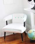 Sometimes, chairs come into our lives. It’s all very casual: we don’t really love them, but we kind of like them, and they were just there at the yard sale, and they were cheap and we could kind of see potential… So we bring them home with us only to realize that we will never actually pay the price to have them reupholstered—they get stashed away in the basement or the garage. But if they are vinyl, it doesn’t have to end there!